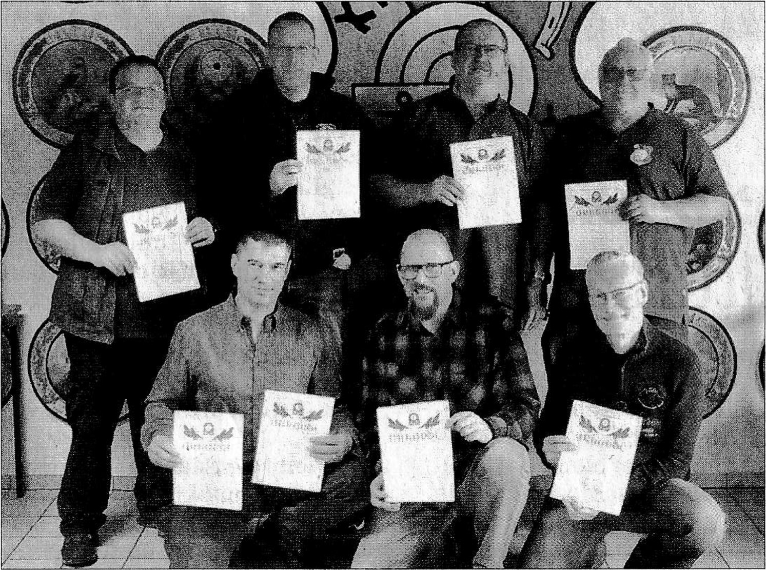 Die Korker Schützen Dennis Wiesbauer, Daniel Wirz, Hubert Bretschneider, Richard Jockers, (hinten v.l.) sowie Marco Ross, Oliver Glatt und Matthias Gründler (vorne v.l.) freuten sich über die erreichten Podestplätze bei der Kreismeisterschaft. Auf dem Bild fehlen: Willi Baitinger, Alexandru Malasevschi, Karsten Sandhas und Michel Neuberger. Foto: KKSG Kork