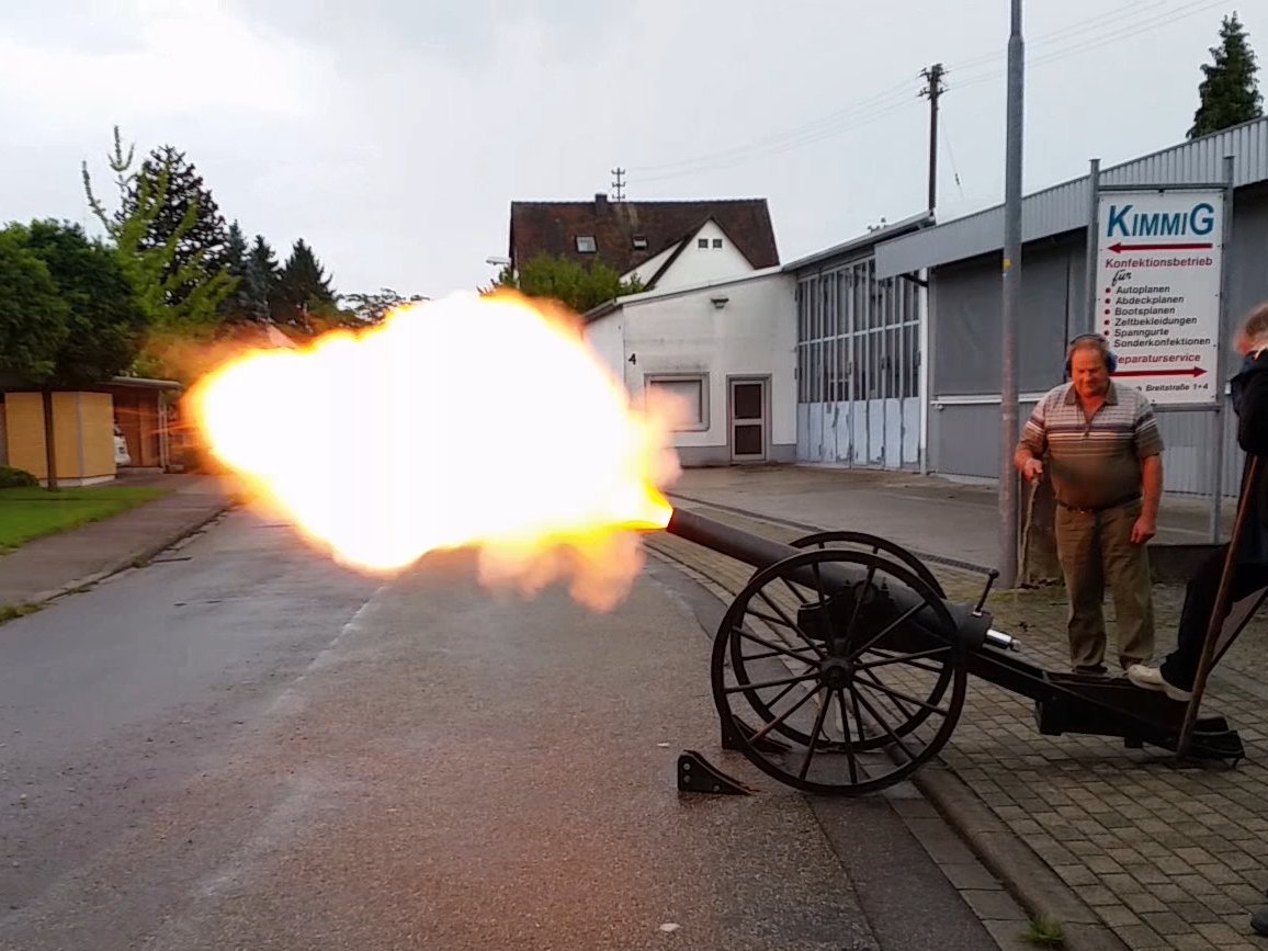 Unser Verein besitzt eine großkalibrige Kartuschen-Böllerkanone im Kaliber 70 mm, die für interne Jubiläumsveranstaltungen und Feiern genutzt wird.