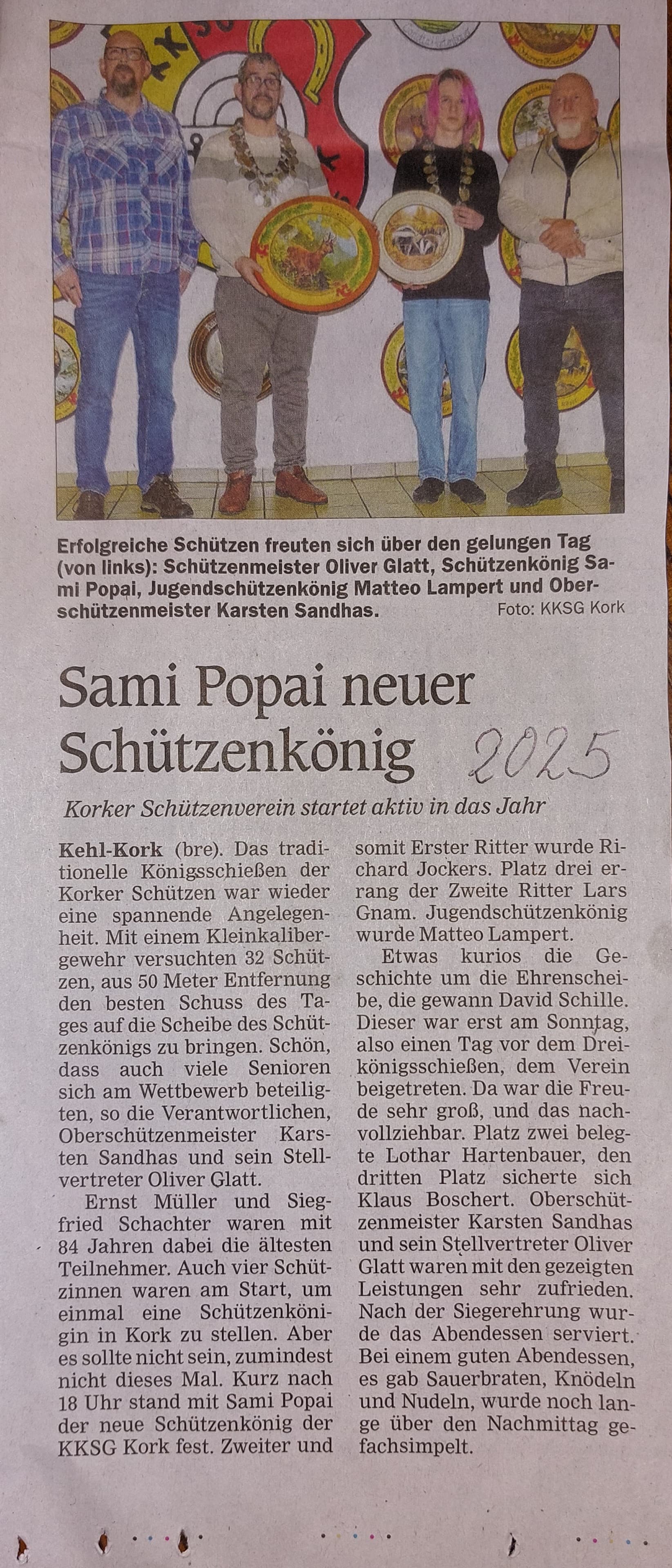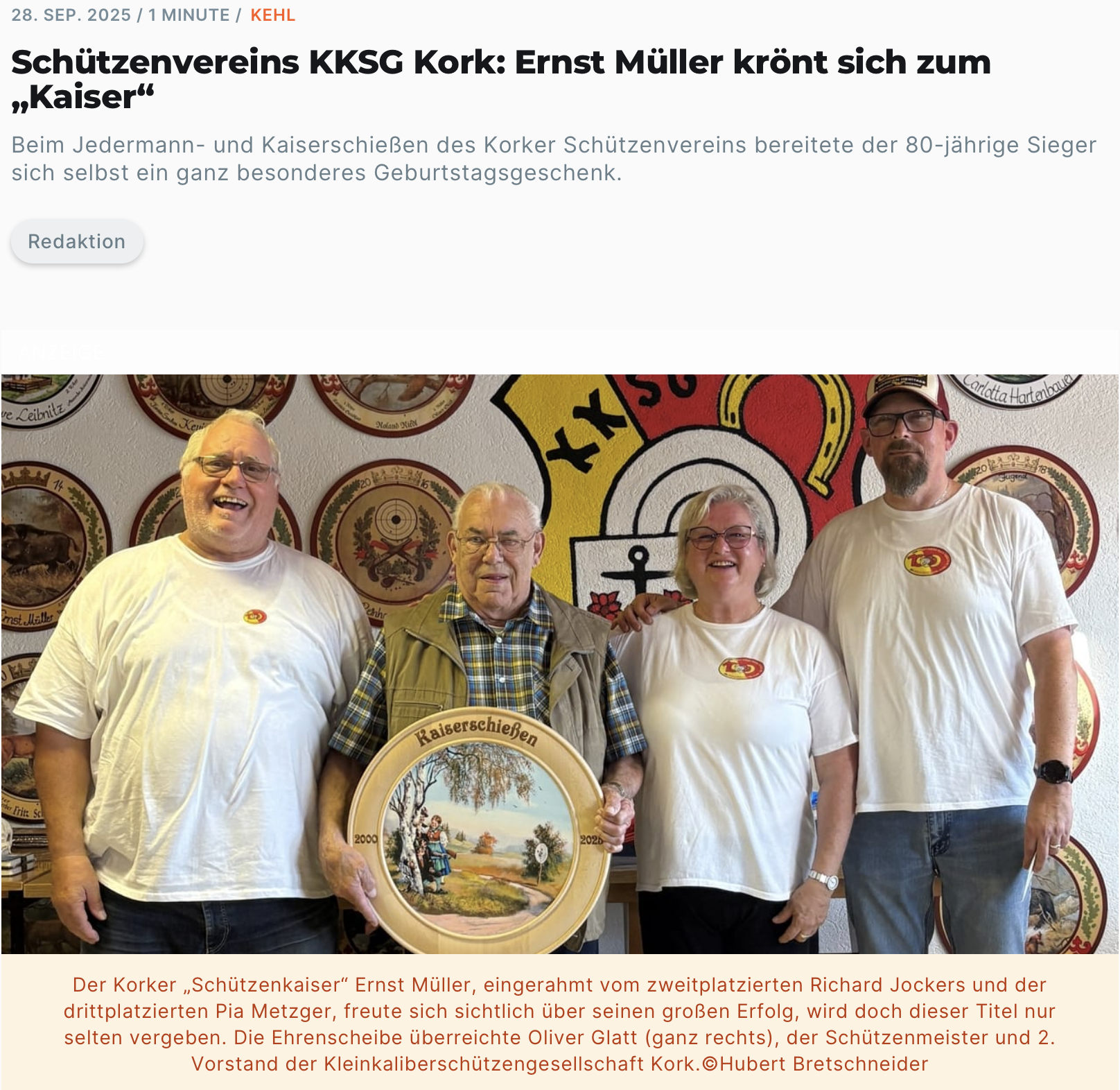 Die KKSG Kork hat einen Schützenkaiser Ernst Müller!